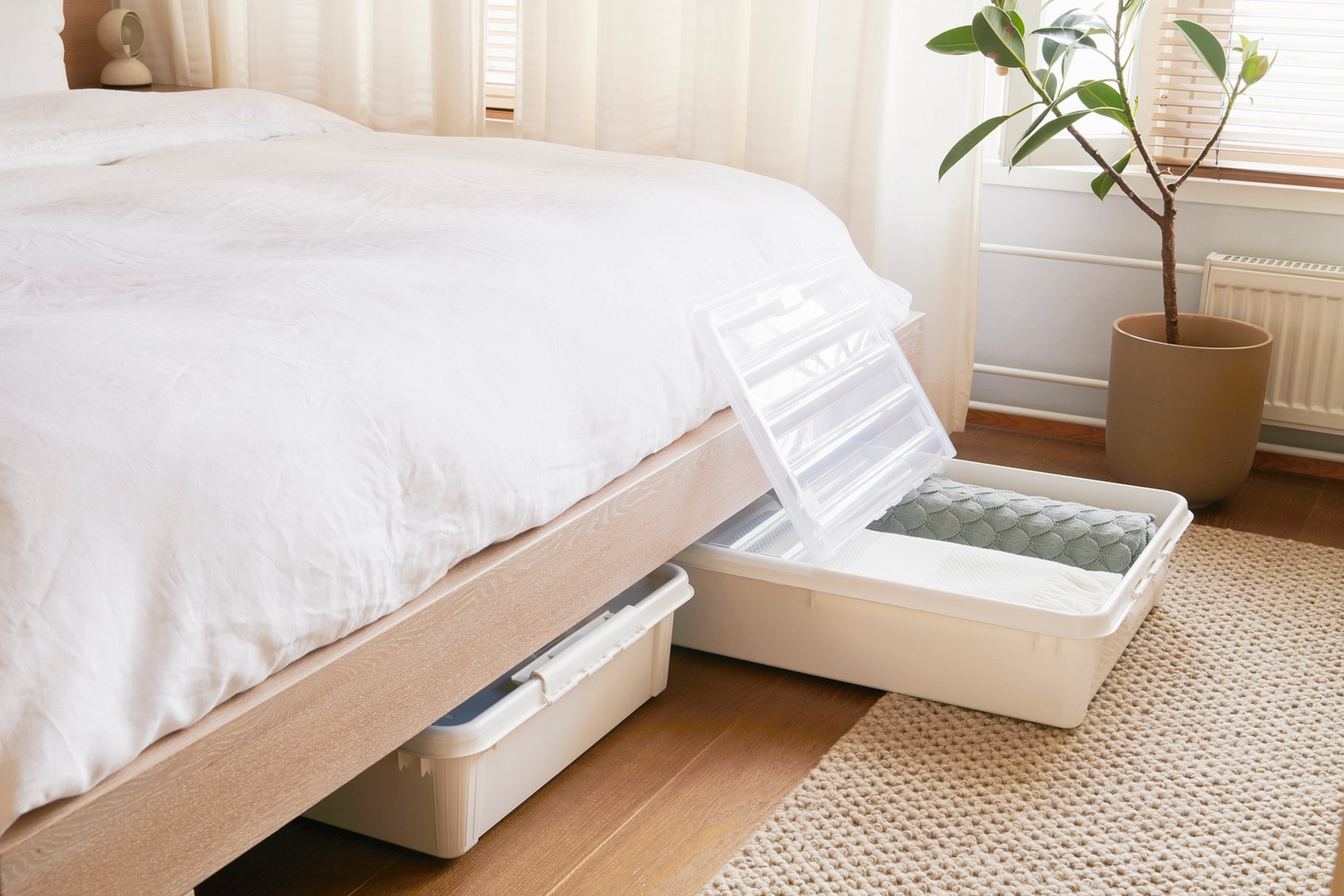 Die perfekte Aufbewahrung fürs Schlafzimmer: Unters Bett damit! Schaffe neuen Stauraum unterm Bett und gewinne so wertvollen Platz in Schränken und Kammern zurück. Diese Bettboxen kann man dank der Rollen leicht unterm Bett verschwinden lassen und wieder hervorholen.