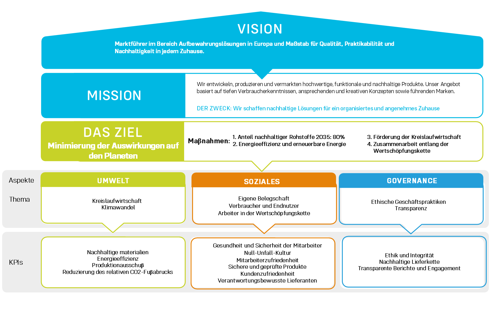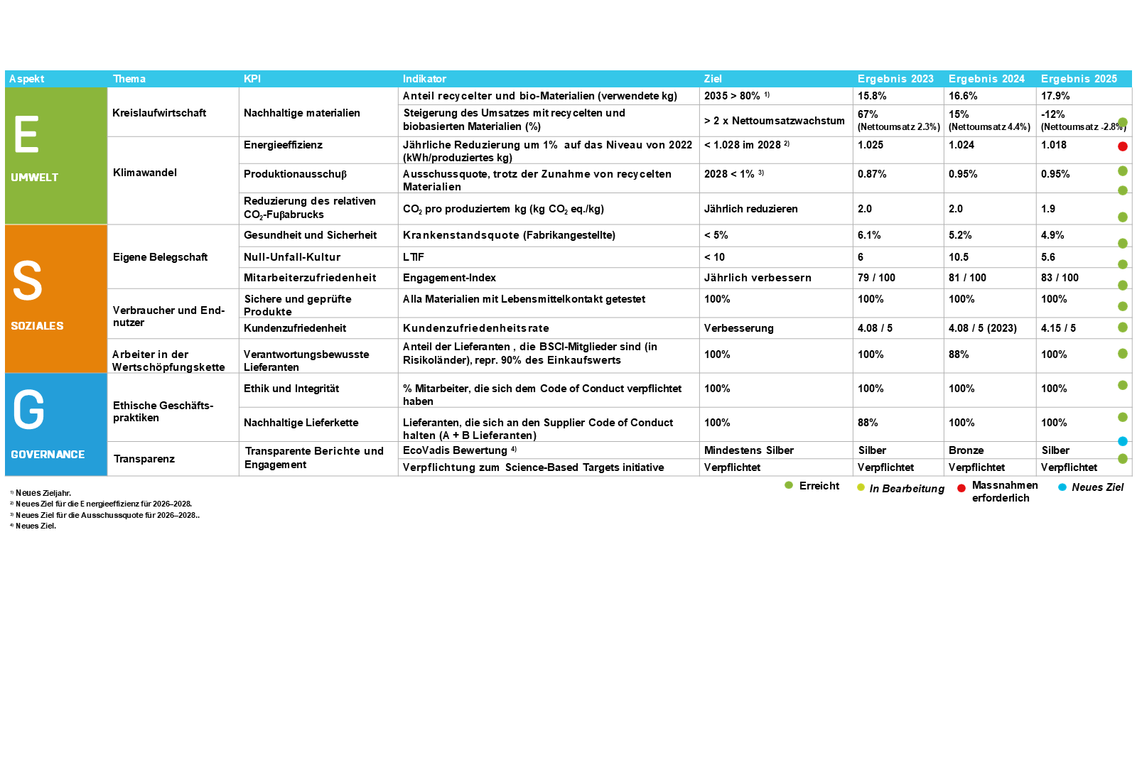 Die Nachhaltigkeitsstrategie von Orthex, relevante Nachhaltigkeitsthemen sowie die festgelegten Indikatoren, Ziele und die bis 2025 erreichten Ergebnisse werden im Folgenden dargestellt.