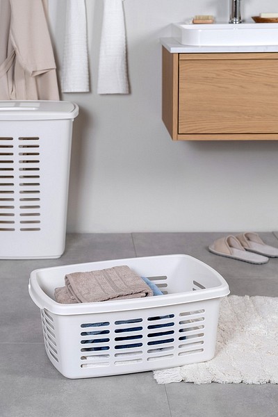Die praktischen Wäschekörbe von Orthex sorgen für Ordnung in der Waschküche. Das Sortieren der Wäsche wird mühelos, wenn separate Körbe für helle und dunkle Wäsche verwendet werden. Dieser geräumige 30 L Wäschekorb fasst mühelos eine volle Ladung feuchter Wäsche. Dank seines vielseitigen Designs eignet er sich nicht nur für Wäsche, sondern auch für die Aufbewahrung von Spielzeug, Zeitschriften oder Sportgeräten. Mit seinen zwei ergonomischen Seitengriffen, Luftlöchern an allen Seiten und abgerundeten Ecken ist er komfortabel und praktisch. Hergestellt in Finnland aus langlebigem Kunststoff.